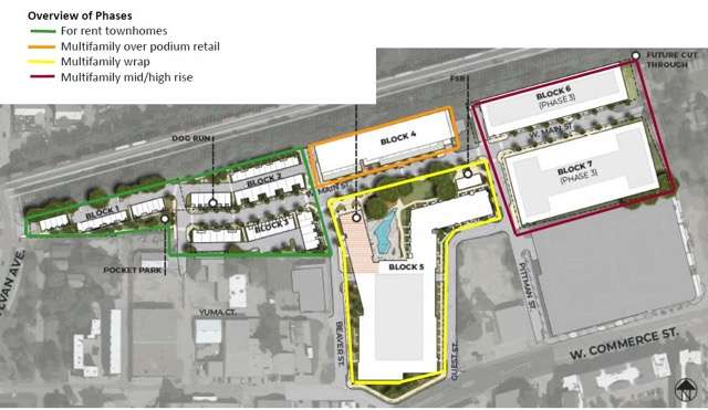 - ​Phase 1 – 300 apts + retail,​ Phase 2 – 148 THs, Phase 3 – 325 apts + retail
